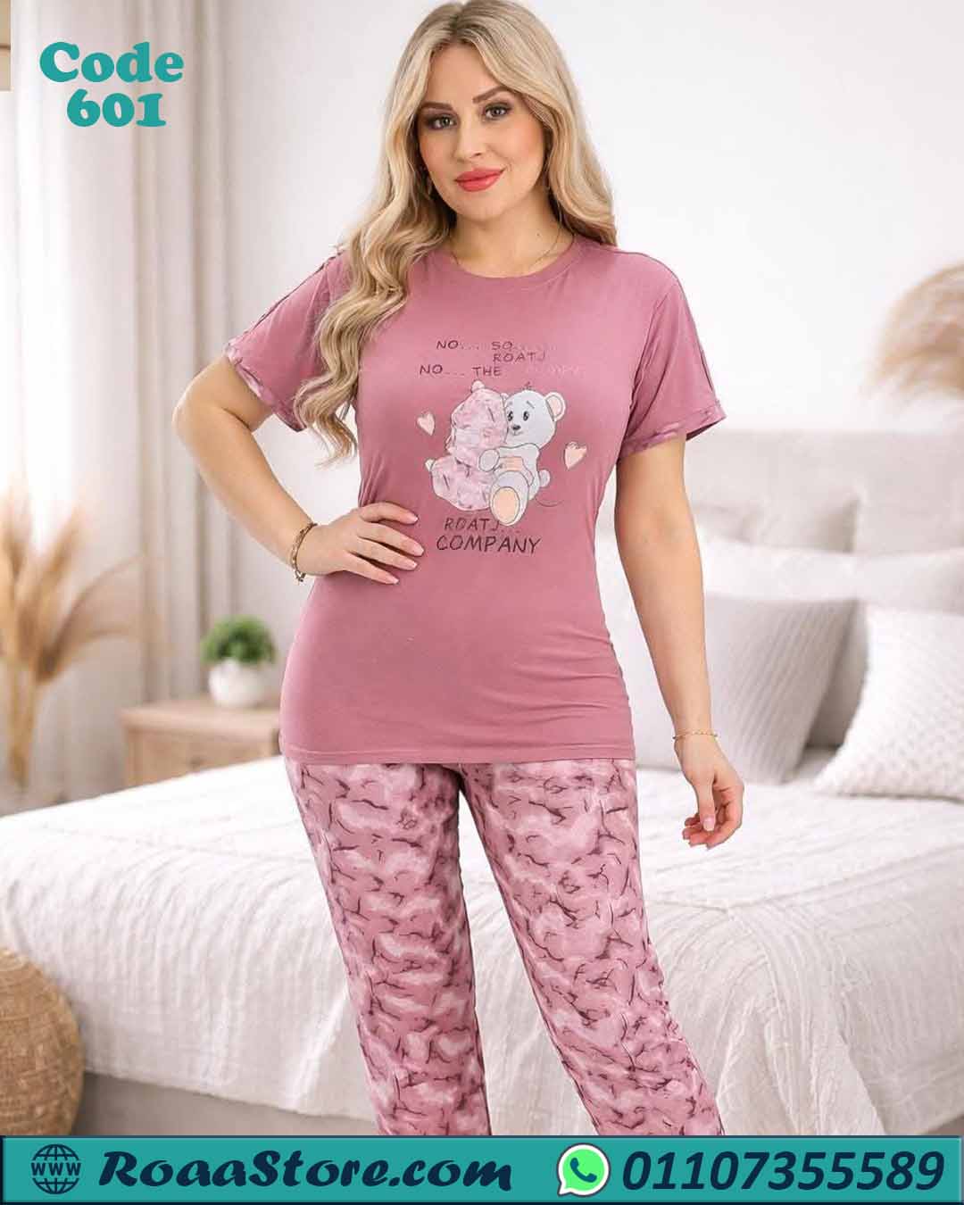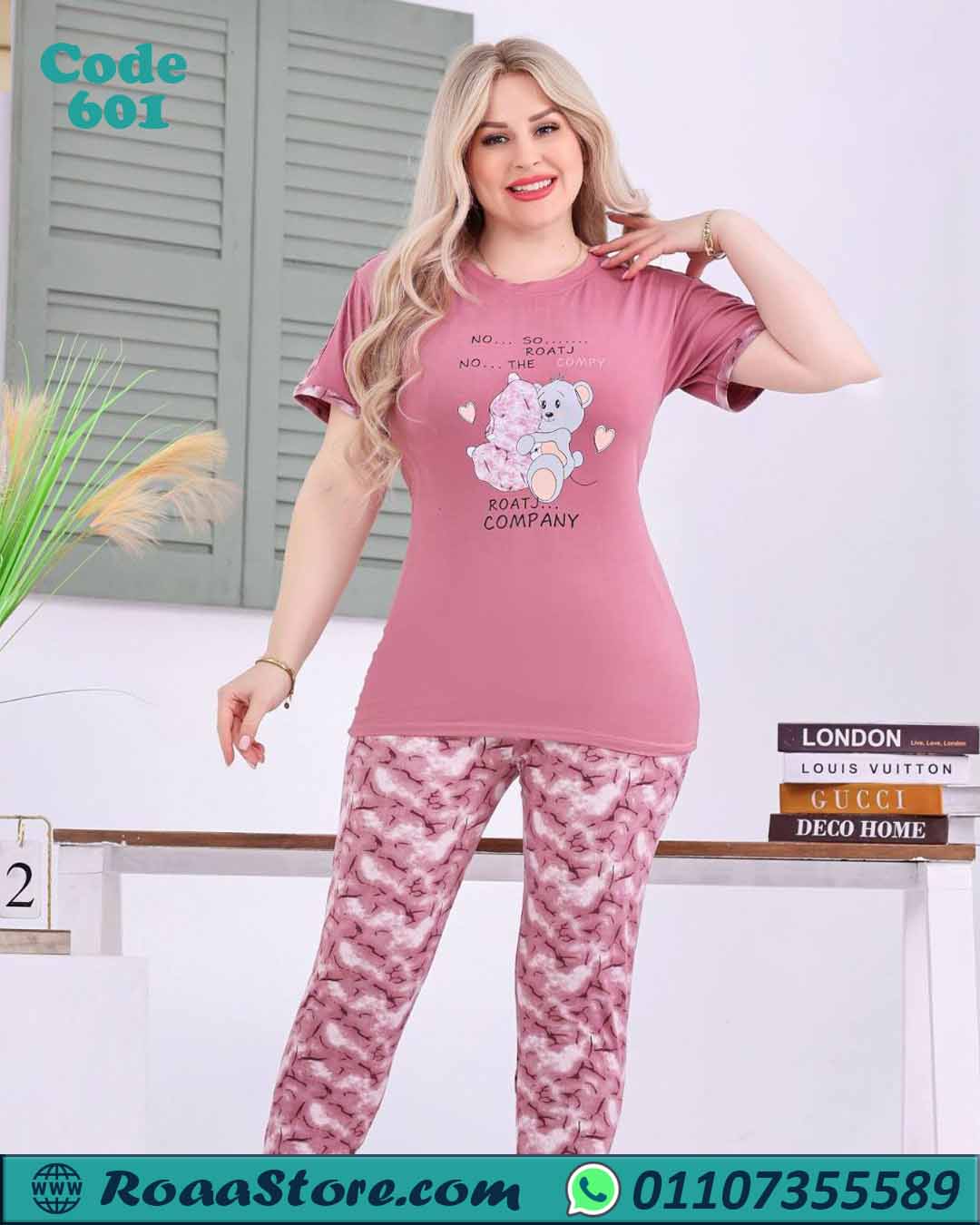 بيجامة حريمي بنقوش أنيقة – كود 601