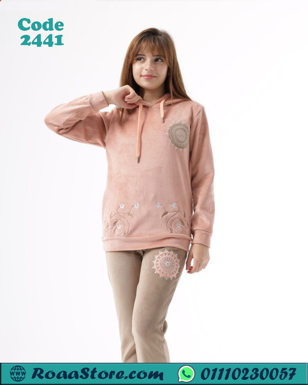 الطقم مكوّن من قطعة علوية بقبعة وبنطلون متناسق، وبالتالي بيدي شكل متوازن ومرتب. بالإضافة إلى ذلك، القصّة المريحة بتسمح بحرية الحركة، وفي نفس الوقت بتحافظ على الشكل العام الأنيق. كمان التفاصيل البسيطة في التصميم بتضيف لمسة عصرية هادية من غير أي مبالغة، وعلشان كده القطعة تناسب أذواق مختلفة.